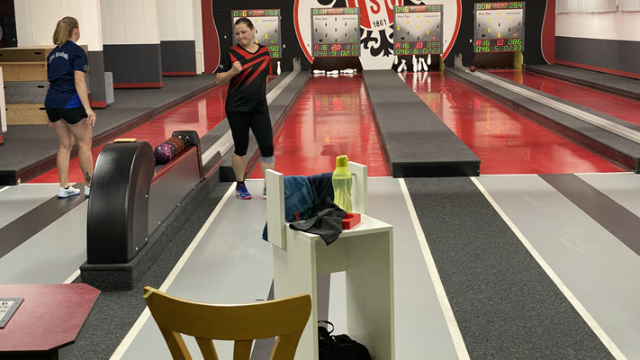 Die Duelle waren teilweise spannender als es das Ergebnis zeigt. Oft wurden Bahnen mit 1 bis 2 Kegel verloren. Nadine hatte z.B. auf der dritten Bahn mit 15 Wurf 100 Kegel, auch Rückkehrer Christopher Braun hatte uns sehr gut unterstützt mit 552 Kegel.