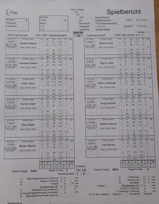Noch zu erwähnen sind Vivienne mit 538 und Lisa mit 524. Bei den Gegnern erzielte Laura König ihre Persönliche Bestleistung von 601 Kegel.