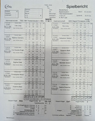 08.10. / NC | Am 3. Spieltag in der 4. Rheinland-Pfalz Liga trafen wir auf den Tabellenführer SKK Rapid Pirmasens 4. Leider verloren wir mit 0:8 (5:19, 3016 zu 3247).