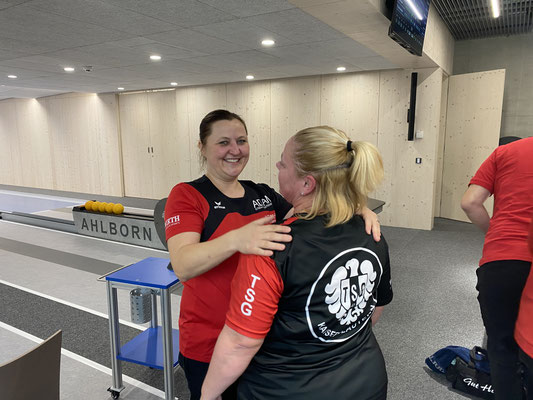 Trotzdem konnte das Schlusspaar mit 6 Punkten und 126 Holz Vorsprung befreit auf die Bahn. Für Dana Baab (547) und Kerstin Dietz (539) hieß es jetzt nur noch Holz halten. Das Spiel endete 3255:3364 und 2:6 Punkten für die TSG.