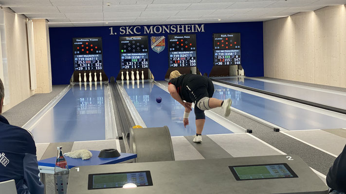 14.10. / DB | Am 12.10.25 waren die Damen der TSG in Monsheim zu Gast. Mit guter Laune und voller Motivation starteten Sie im ersten Durchgang mit Vanessa Welker (618) und Alessia Kappler (558). Im mittleren Paar durften Christine Sprengard (562) und Katrin Barz (540) ran. Es waren bis dato fast alle Duelle sehr spannend und wurden teilweise erst im letzten Wurf entschieden.